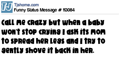 X says Call me crazy but when a baby won't stop crying I ask its mom to spread her legs and I try to gently shove it back in her.