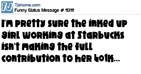X says I'm pretty sure the inked up girl working at Starbucks isn't making the full contribution to her 401k...