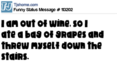X says I am out of wine, so I ate a bag of grapes and threw myself down the stairs.