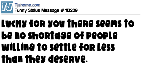 X says Lucky for you there seems to be no shortage of people willing to settle for less than they deserve.