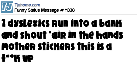 X 2 dyslexics run into a bank and shout "air in the hands mother stickers this is a f**k up