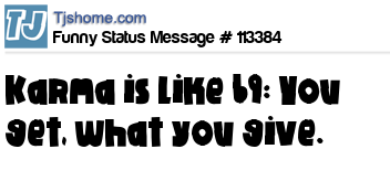 - # 79390 Karma is like a 69, you get what you give.