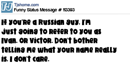X says If you're a Russian guy, I'm just going to refer to you as Ivan. Or Victor. Don't bother telling me what your name really is, I don't care.