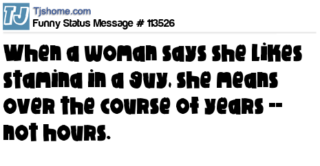 X says When a woman says she likes stamina in a guy, she means over the course of years -- not hours.