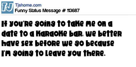 X says If you're going to take me on a date to a karaoke bar, we better have sex before we go because I'm going to leave you there.