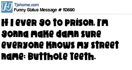 X says If I ever go to prison, I'm gonna make damn sure everyone knows my street name: Butthole Teeth.