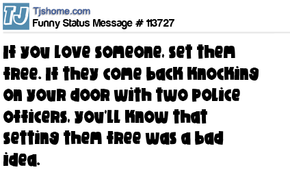 - # 143765 If you love someone, set them free. If they come back with two police officers,,, You'll know that setting them free was a bad idea.