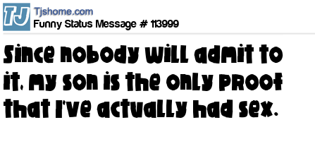 X says Since nobody will admit to it, my son is the only proof that I've actually had sex.