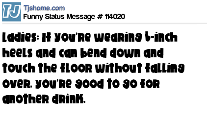 X says Ladies: If you're wearing 6-inch heels and can bend down and touch the floor without falling over, you're good to go for another drink.