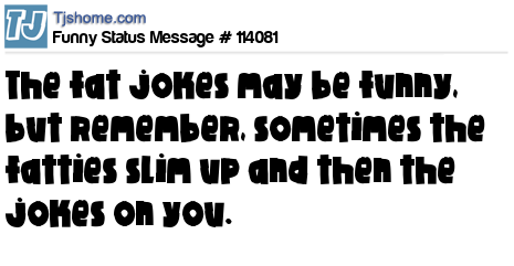 X says The fat jokes may be funny, but remember, sometimes the fatties slim up and then the jokes on you.