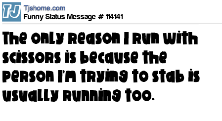 X says The only reason I run with scissors is because the person I'm trying to stab is usually running too.