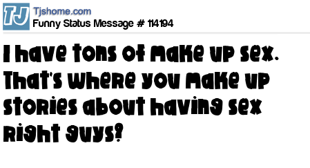 X says I have tons of make up sex. That's where you make up stories about having sex right guys?