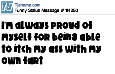 X is I'm always proud of myself for being able to itch my ass with my own fart