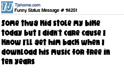 X is Some thug kid stole my bike today but I didn't care cause I know I'll get him back when I download his music for free in ten years