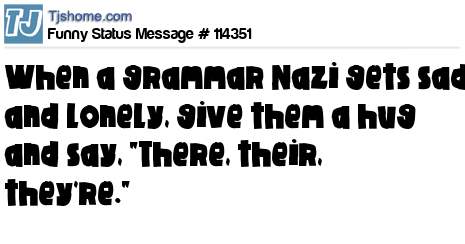 - # 106280 when comforting a grammar nazi I always say "there, they're, their"