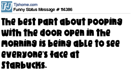 X is The best part about pooping with the door open in the morning is being able to see everyone's face at Starbucks.