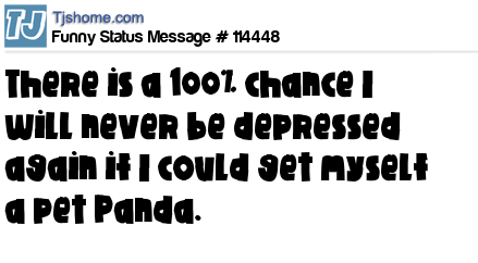 X says There is a 100% chance I will never be depressed again if I could get myself a pet Panda.