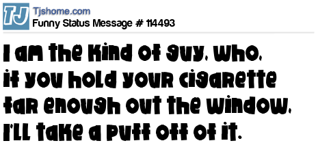 X says I am the kind of guy, who, if you hold your cigarette far enough out the window, I'll take a puff off of it.