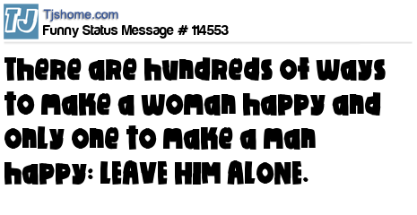 X There are hundreds of ways to make a woman happy and only one to make a man happy: LEAVE HIM ALONE.