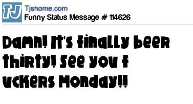 X says Damn! It's finally beer thirty! See you f uckers Monday!!