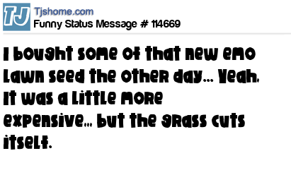 X I bought some of that new emo lawn seed the other day... Yeah, It was a little more expensive,,, but the grass cuts itself.