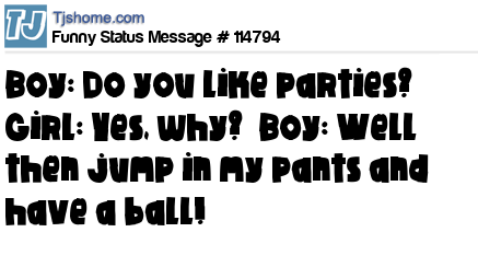 X is Boy: Do you like parties? Girl: Yes, why? Boy: Well then jump in my pants and have a ball!