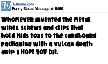 - # 84131 Dear guy that invented the metal wires, screws and clips that hold kids toys to the cardboard packaging with a death grip: I HOPE YOU DIE.