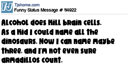 X is Alcohol does kill brain cells. As a kid I could name all the dinosaurs. Now I can name maybe three, and I'm not even sure armadillos count.