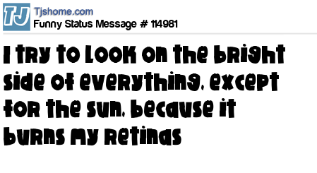 X I try to look on the bright side of everything, except for the sun, because it burns my retinas