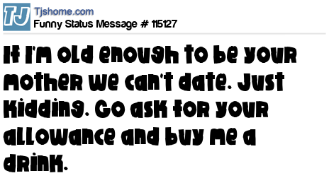 X says If I'm old enough to be your mother we can't date. Just kidding. Go ask for your allowance and buy me a drink.