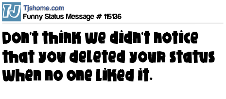 - # 119549 Don't think we didn't notice you deleted your status when no one liked it