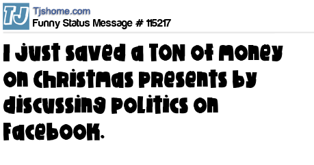 - # 171897 I just saved a ton of $ on Christmas presents by discussing politics on FB.