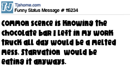 X Common scence is knowing the chocolate bar I left in my work truck all day would be a melted mess. Starvation would be eating it anyways.