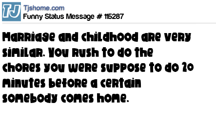 X says Marriage and childhood are very similar. You rush to do the chores you were suppose to do 20 minutes before a certain somebody comes home.