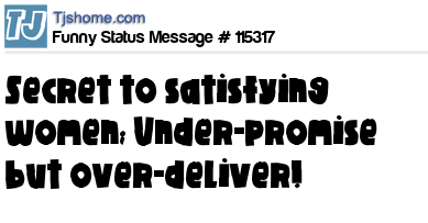 - # 115574 Secret to satisfying women; Under-promise but over-deliver