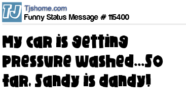 X My car is getting pressure washed...So far, Sandy is dandy!
