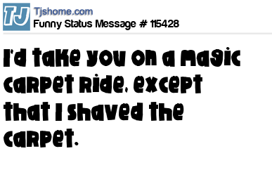 X says I'd take you on a magic carpet ride, except that I shaved the carpet.