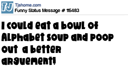 - # 58397 Sometime I look at people and think, "I could eat a bowl of alphabet soup and sh!t a better argument than that"