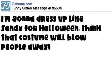X is I`m gonna dress up like Sandy for Halloween, think that costume will blow people away!