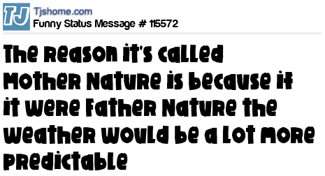 X says The reason it's called Mother Nature is because if it were Father Nature the weather would be a lot more predictable