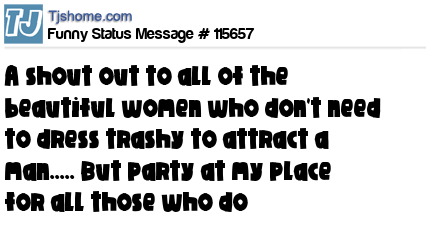 X is A shout out to all of the beautiful women who don't need to dress trashy to attract a man..... But party at my place for all those who do