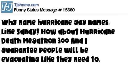 X is Why name hurricane gay names, like Sandy? How about Hurricane Death Megatron 300 And I guarantee people will be evacuating like they need to.