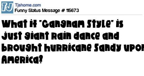 - # 115485 What if Gangnam Style is actually a rain dance and we've brought the frankenstorm down upon ourselves?