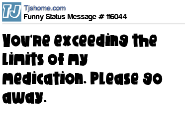 - # 100213 SO! My Dr tells me I have to take medication. Why? To stop you from slapping people who should be on medication. Hmmmm!