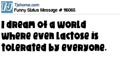 - # 165625 The world would be a better place if a certain group of people would be more tolerant. I'm speaking to the lactose intolerant people out there. Stop the hate.