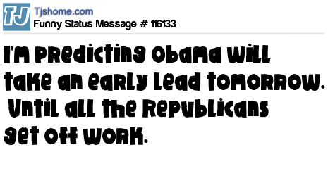 X is I'm predicting Obama will take an early lead tomorrow. Until all the Republicans get off work.