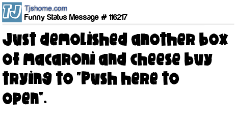 X Just demolished another box of macaroni and cheese buy trying to "Push here to open".