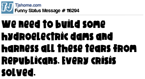 X says We need to build some hydroelectric dams and harness all these tears from Republicans. Every crisis solved.
