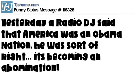 X is Yesterday a Radio DJ said that America was an Obama Nation, he was sort of right... its becoming an abomination!