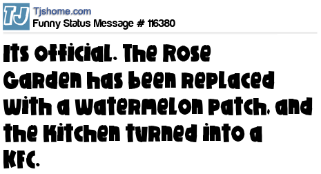 X says Its official. The Rose Garden has been replaced with a watermelon patch, and the kitchen turned into a KFC.